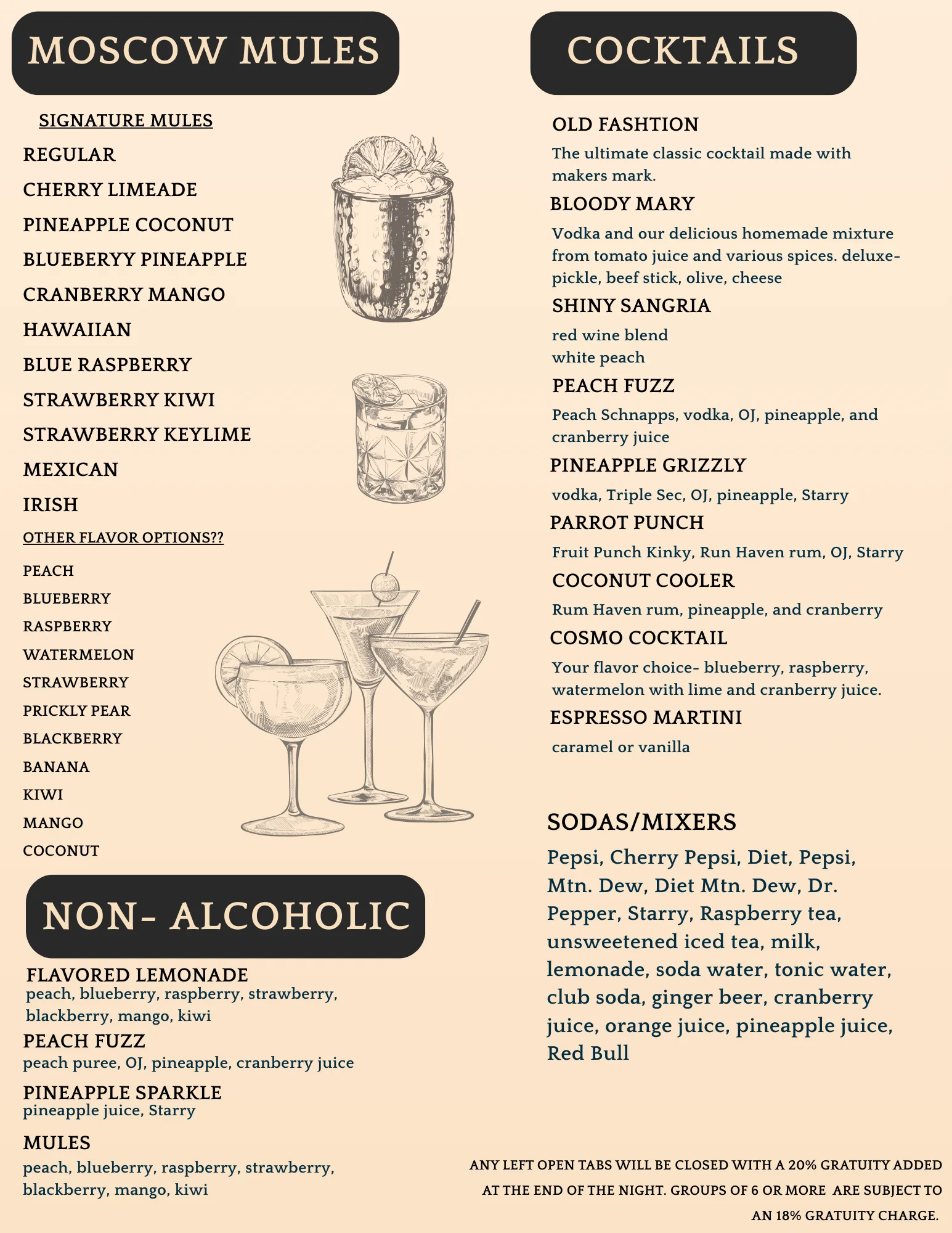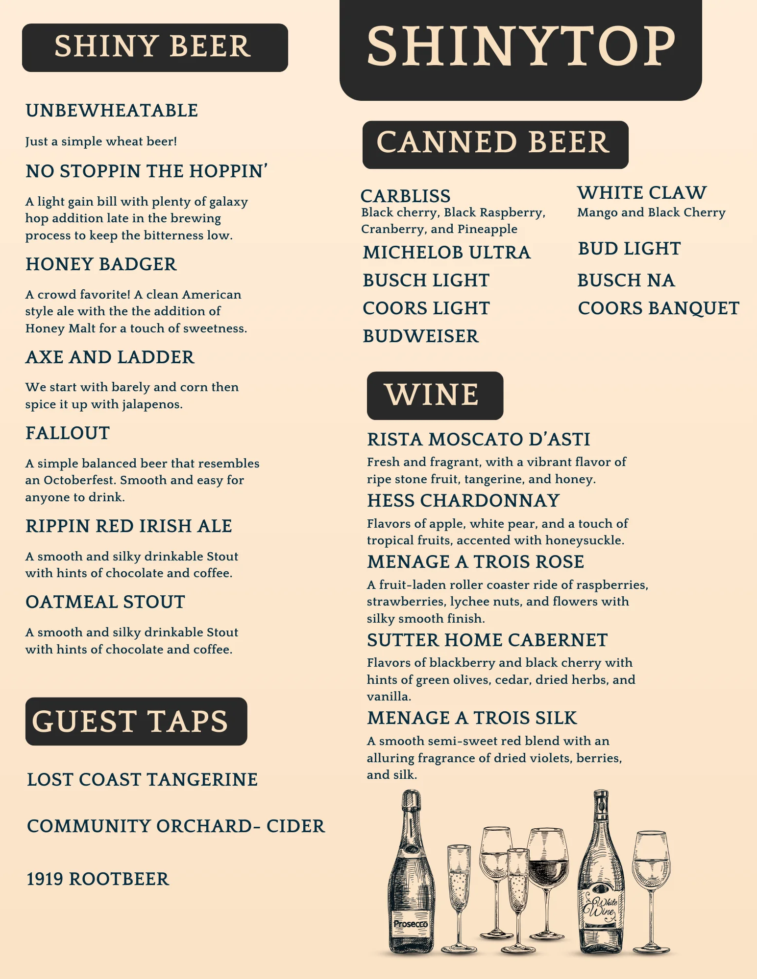 Try one of our signature beers on tap or check out what’s new on our guest taps. Not a fan of beer? We’ve got you covered too. We also have cocktails, wine and an awesome whiskey list.